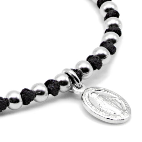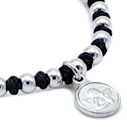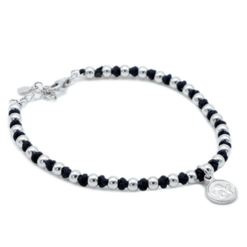 AMORE SACRO 100B1012 BRACCIALE INTRECCIATO CON PERLINE E MEDAGLIETTA ROTONDA IN ARGENTO