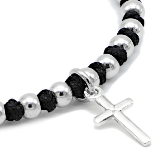 AMORE SACRO 100B1014 BRACCIALE INTRECCIATO CON PERLINE E MEDAGLIETTA A CROCE