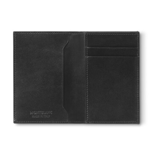 Realizzato in vitello pieno fiore Colore nero Fodera jacquard nera Colore: Nero 7 Taschine per cc di cui una con trasparente 4 Tasche extra Scomparto per banconote Portdocumenti estraibile Dimensioni: 9 x 12,5 cm Confezione originale Montblanc Garanzia inclusa