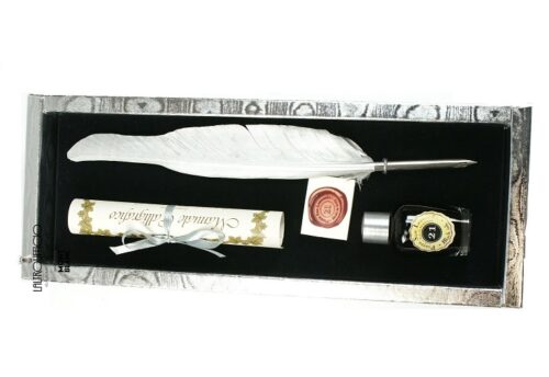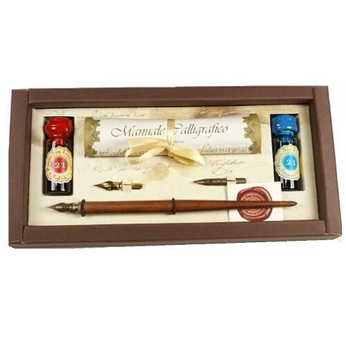 SET SCRITTURA PIUMA CON PUNTALE IN METALLO 4 FLACONI INCHIOSTRO COLORI ASSORTITI 21025 RUBINATO