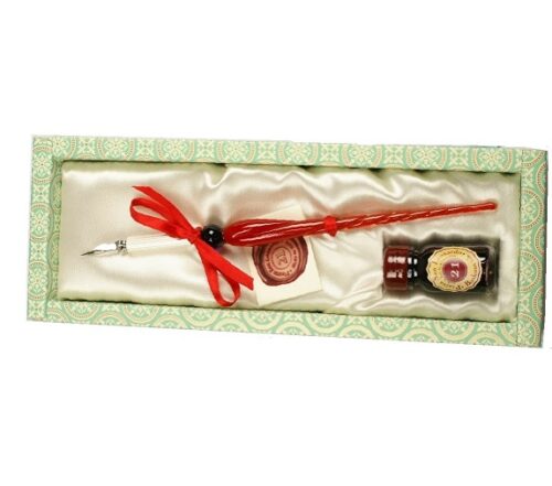 SET SCRITTURA PENNA IN VETRO PUNTALE E PENNINO IN METALLO FLACONE INCHIOSTRO 21038R RUBINATO