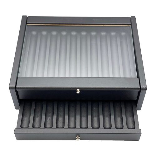 SCATOLA PORTAPENNE IN LEGNO SPORTELLINO IN VETRO 12 ALLOGGIAMENTI CP12002