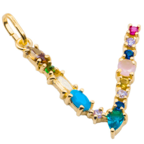 I DUCHI 11208117 CATENINA IN ARGENTO E PENDENTE LETTERA V CON PIETRE MULTICOLORE