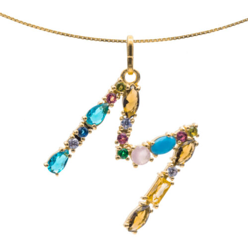 I DUCHI 11208110 CATENINA IN ARGENTO E PENDENTE LETTERA M CON PIETRE MULTICOLORE