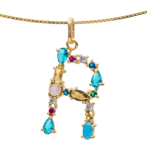 I DUCHI 11208101 CATENINA IN ARGENTO E PENDENTE LETTERA A CON PIETRE MULTICOLORE