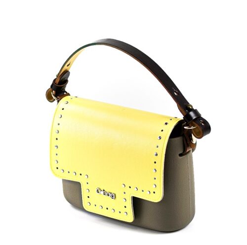 O-BAG BORSA MINIBAG CON PATTINA DECORATA POCKET 912 GIALLO/MARRONE