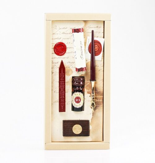 SET SCRITTURA PIUMA CON PUNTALE IN METALO 1 FLACONE INCHIOSTRO ROSSO 21023 RUBINATO