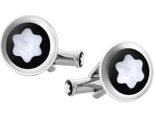 Realizzati in acciaio pregiato Finitura palladio Interno in madreperla Chiusura a scatto Confezione originale Montblanc Garanzia inclusa