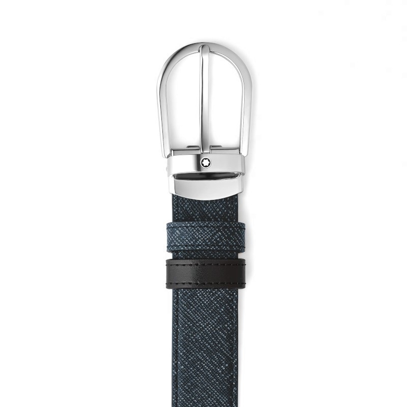 Questa cintura reversibile unisce eleganza e praticità, offrendo due stili distinti in un unico accessorio. Caratterizzata dall’iconica fibbia a ferro di cavallo con finitura palladio di Montblanc, la cinghia da 30 mm è realizzata in pelle stampa Saffiano blu tweed da un lato e in sofisticata pelle Meisterstück nera dall’altro, offrendo un tocco di eleganza classica.