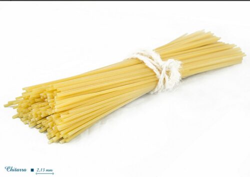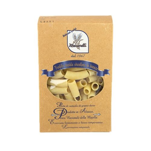 La Pasta extra lunga Masciarelli è un formato antico: come accadeva nell’ottocento, la famiglia Masciarelli pastifica ancora stendendo a mano un solo formato lungo quasi un metro. Oggi, con questa linea, torna nelle nostre cucine il gusto ed il formato originale della lasta lunga ( 53 cm con piega ), prodotta in una selezione di semole, miscelate con acqua del Parco Nazionale, trafilate al bronzo e fatte essiccare lentamente per garantire la qualità e la proprietà organolettica. Una piccola opera d’arte, che ha ricevuto prestigiosi riconoscimenti, tra cui quelli del Gambero Rosso, ed è prodotta in quantitativi limitati proprio per questa sua natura estremamente artigianale.