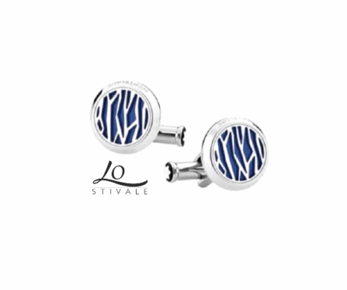 - I gemelli in acciaio pregiato sono un omaggio dell’iniziativa di Montblanc in collaborazione con l’UNICEF. Il tocco di resina blu e l’emblema a forma di vetta innevata inciso sull’inserto in acciaio creano un gioiello dalla personalità forte e intramontabile.
