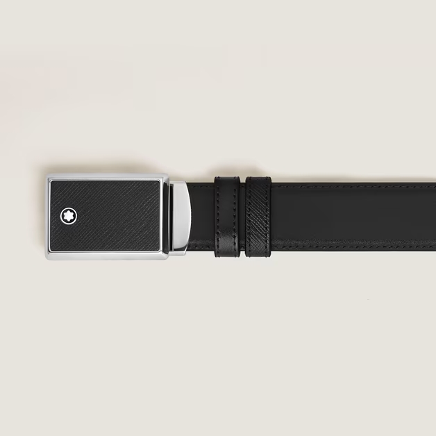 Valorizza il tuo stile con questa raffinata cintura reversibile 30 mm in pelle. La fibbia con intarsi che reca un motivo goffrato Sartorial kaki dalla finitura palladio lucido, aggiunge una nota sofisticata che coniuga dettagli sottili ed eleganza intramontabile. La cintura reversibile offre due look distinti: un lato è in pelle goffrata Sartorial nera e l’altro in classica pelle Meisterstück liscia nera.